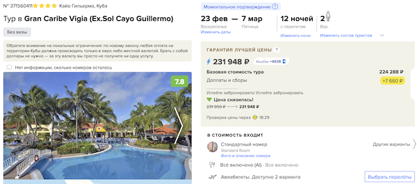 Gran Caribe Vigia 4* 115.900 рублей за человека (231.900 рублей за двоих)
