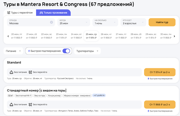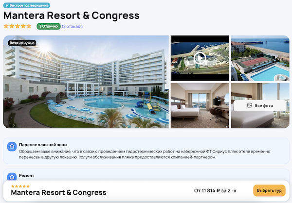 5* отель (Mantera Resort & Congress) в Сочи летом 11.800 рублей за двухместный номер.