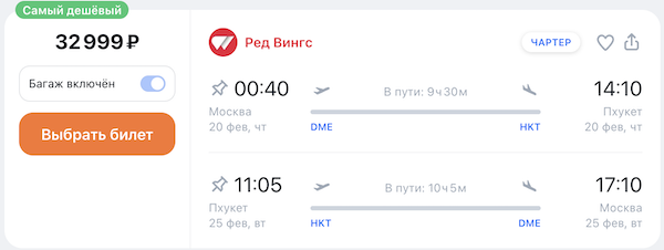 Горящие билеты на прямые чартерные рейсы из Москвы на Пхукет от 33.000 рублей туда-обратно.