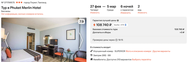 Горящие туры из Москвы на Пхукет от 54.300 рублей за человека.