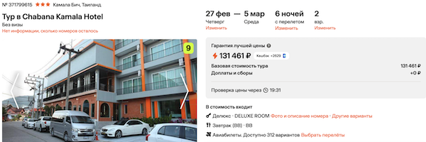 Стоимость в примерах указана за одного человека при условии поездки вдвоем, стоимость туров для одного человека можно посмотреть здесь или на страницах отелей.