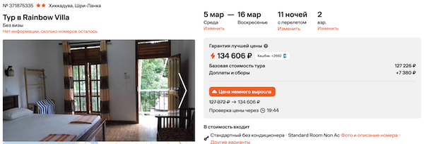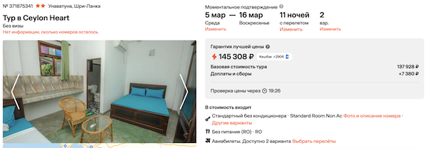 Туры из Санкт-Петербурга на Шри-Ланку: прямой перелет, трансферы и 10 дней в отеле от 67.300 рублей за человека.
