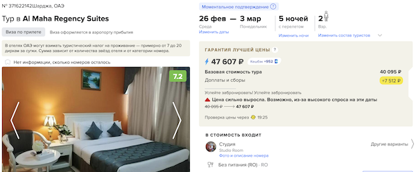 Al Maha Regency Suites 23.800 рублей за человека (47.600 рублей за двоих)