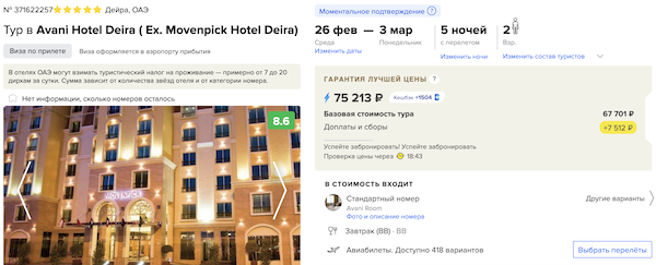 Горящие туры из Москвы в ОАЭ от 23.800 рублей за человека.