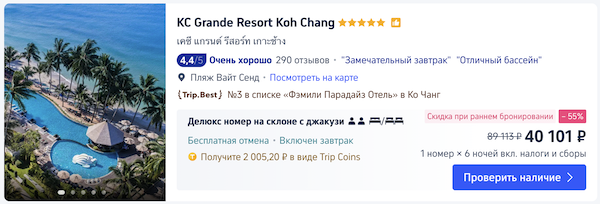 Неделя в 5* KC Grande Resort на Ко Чанге 40.100 рублей за двухместный номер с завтраками