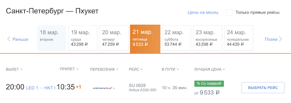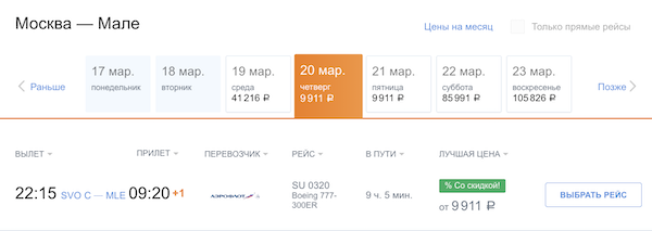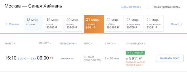 Последний день распродажи горящих билетов Аэрофлота: сегодня на вылеты 20 и 21 марта. Хайнань, Пхукет, Бангкок, Мальдивы и другие направления 10.000 рублей в одну сторону.