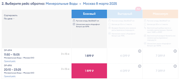 Москва — Минеральные Воды — Москва с 7 по 8 марта. Билеты на сайте Победы.