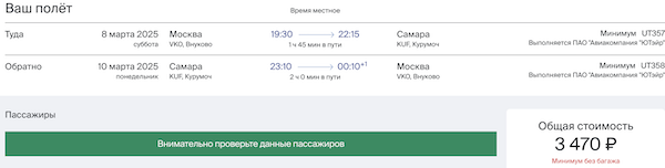 Москва — Самара — Москва с 8 по 10 марта. Билеты на сайте Utair.