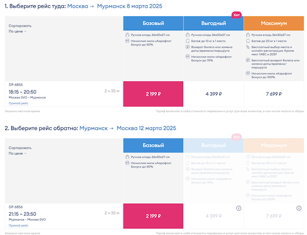 Москва — Мурманск — Москва с 8 по 12 или 18 марта. Билеты на сайте Победы.
