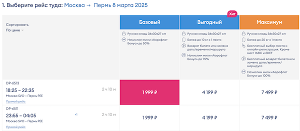 Москва — Пермь — Москва с 8 по 12 марта. Билеты на сайте Победы.