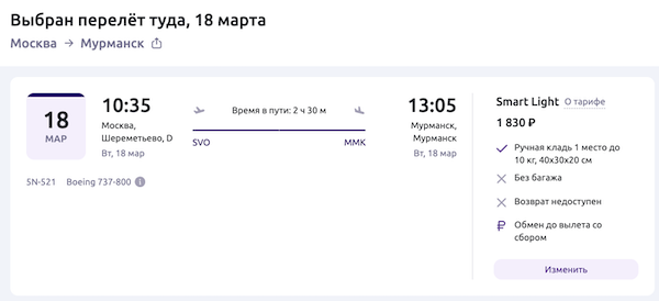Москва — Мурманск 18 марта. Билеты на сайте Смартавиа. Мурманск — Москва 26 марта. Билеты на сайте Победы.