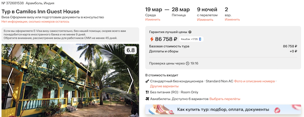 Стоимость в примерах указана за одного человека при условии поездки вдвоем, стоимость туров для одного человека можно посмотреть здесь или на страницах отелей.