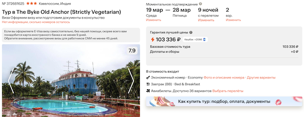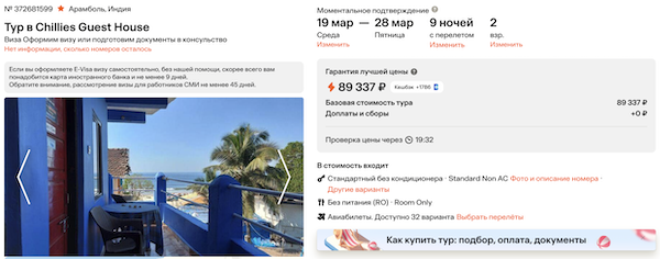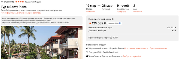 Туры из Москвы в Гоа от 43.400 рублей за человека.