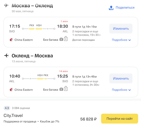 Билеты из Москвы в Новую Зеландию от 56.800 рублей туда-обратно.