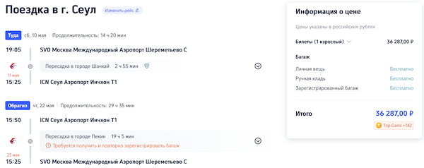 Рейсы выполняются авиакомпанией China Eastern с пересадкой в Шанхае или Пекине.