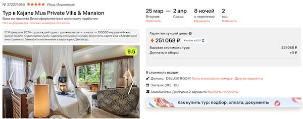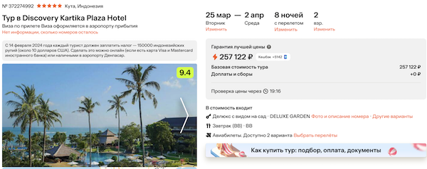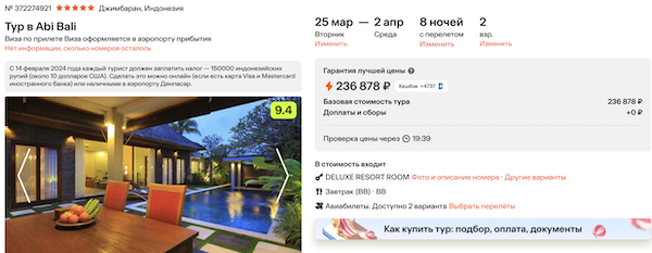 Туры из Москвы на Бали в конце марта от 118.400 рублей за человека.
