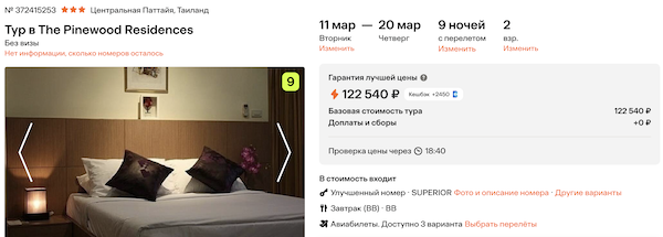 The Pinewood Residences 3* с завтраками 61.200 рублей за человека (122.500 рублей за двоих)