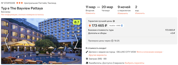 The Bayview Pattaya 3* с завтраками 86.700 рублей за человека (173.500 рублей за двоих)