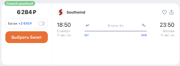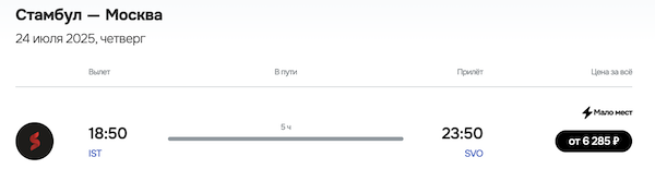 Москва — Стамбул 5 августа, Стамбул — Москва 11 августа
