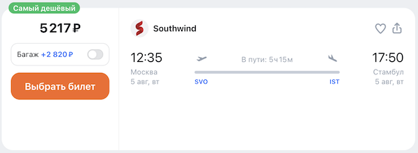 Из Москвы в Стамбул летом от 5.200 рублей в каждую сторону.