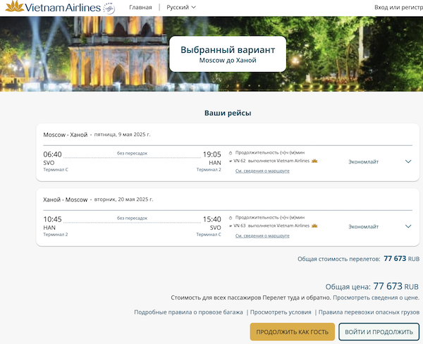 Вьетнамские авиалинии открыли продажу билетов на прямые рейсы из Москвы в Ханой.