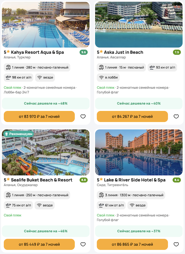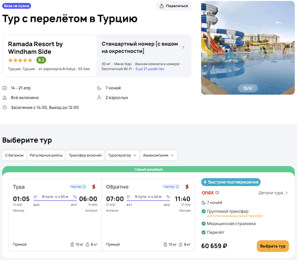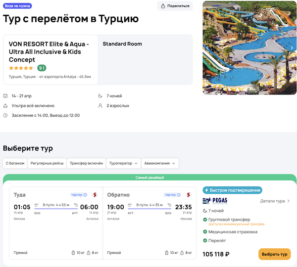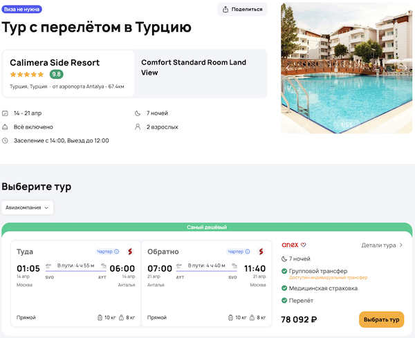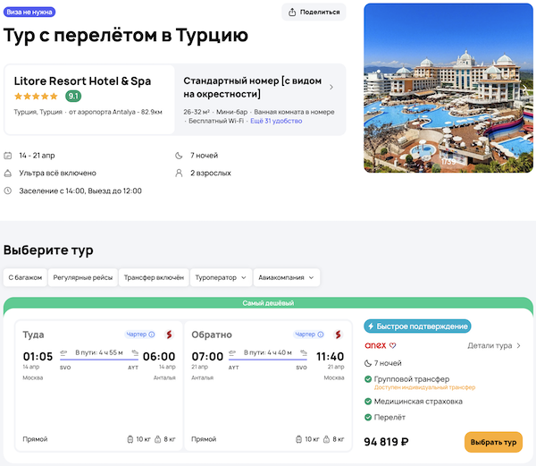 Стоимость в примерах указана за одного человека при условии поездки вдвоем, стоимость туров для одного человека можно посмотреть здесь или на страницах отелей.
