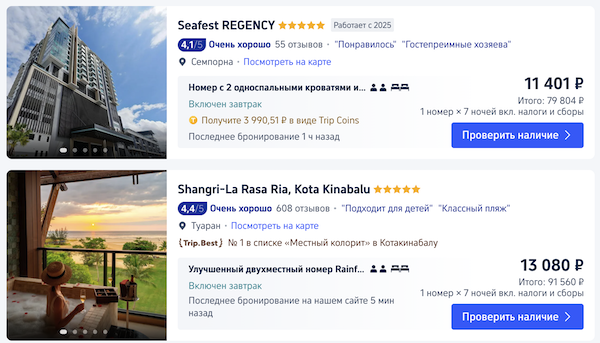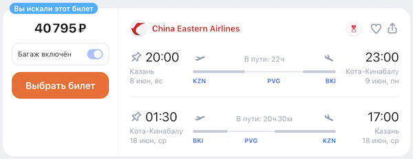 Из Казани на остров Борнео (Калимантан) 40.800 рублей туда-обратно.