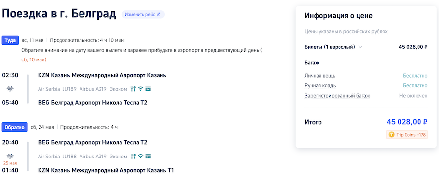 Прямые рейсы из Казани в Сербию в мае 45.000 рублей туда-обратно.