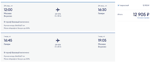 Горящие билеты из Москвы в Армению (Гюмри) 12.900 рублей туда-обратно.