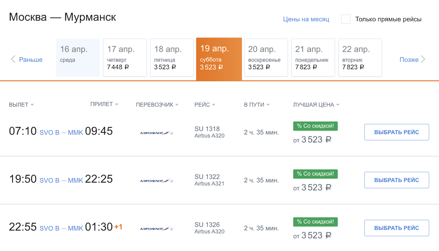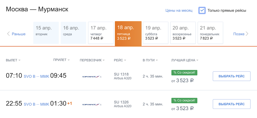 Горящие билеты из Москвы в Мурманск от 5.000 рублей туда-обратно.