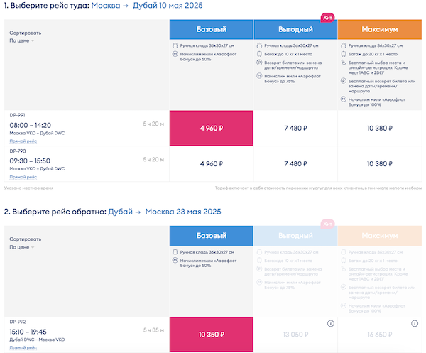 Билеты из Москвы в ОАЭ в мае: 5.000 рублей в одну сторону, от 15.300 туда-обратно.