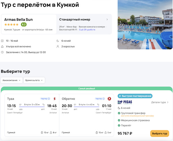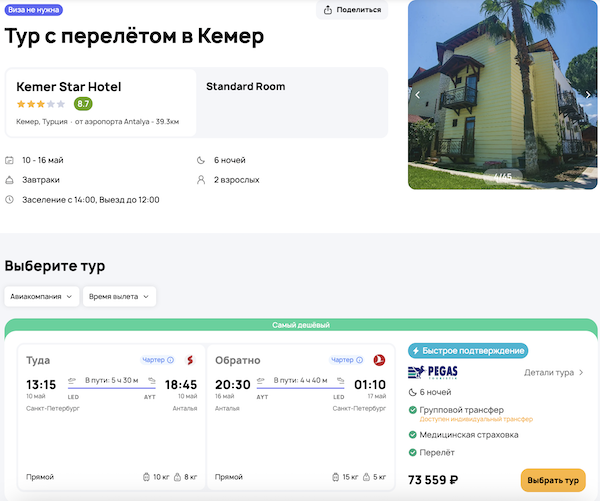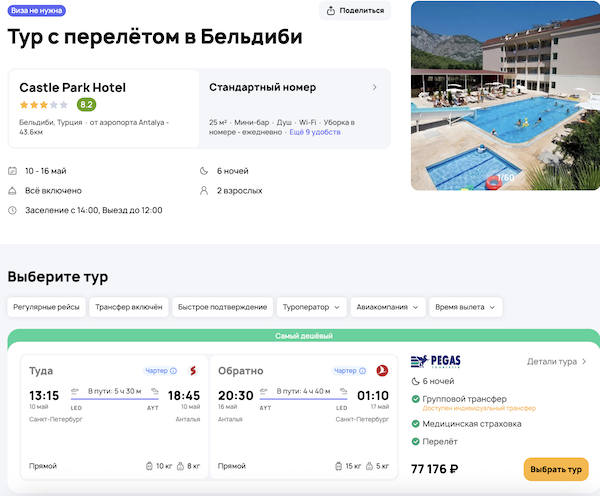 Туры из Санкт-Петербурга в Турцию в мае от 36.800 рублей за человека.