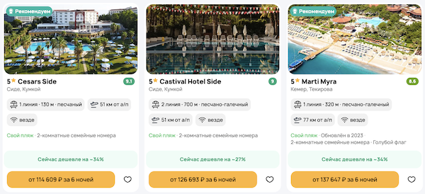 Стоимость в примерах указана за одного человека при условии поездки вдвоем, стоимость туров для одного человека можно посмотреть здесь или на страницах отелей.