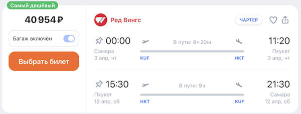 Горящие билеты на прямые чартерные рейсы из Самары на Пхукет от 38.700 рублей туда-обратно.