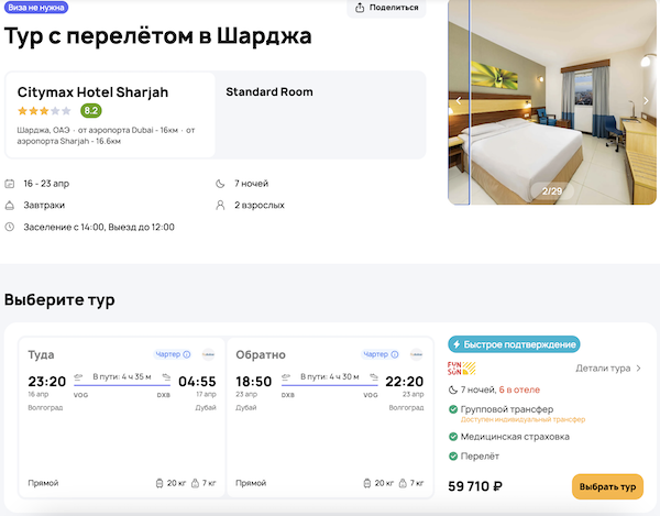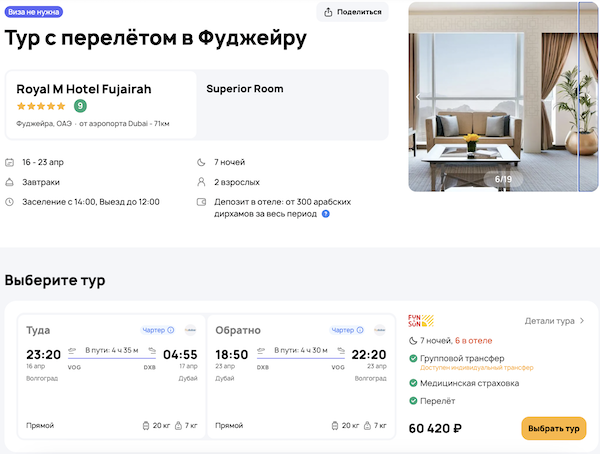 Туры из Волгограда в ОАЭ от 29.800 рублей за человека.