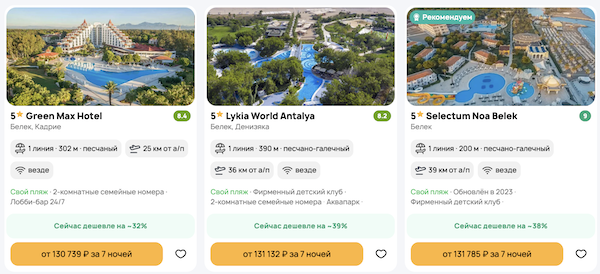 Стоимость в примерах указана за одного человека при условии поездки вдвоем, стоимость туров для одного человека можно посмотреть здесь или на страницах отелей.