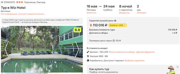 Туры из Москвы в Таиланд в мае от 56.500 рублей за человека.