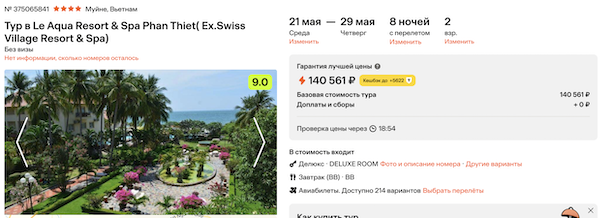 Туры из Москвы во Вьетнам в конце мая от 64.500 рублей за человека.