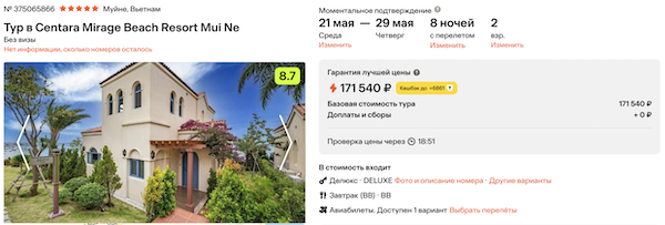 Стоимость в примерах указана за одного человека при условии поездки вдвоем. Стоимость туров для 1 человека можно посмотреть здесь или на странице отелей, изменив количество туристов.