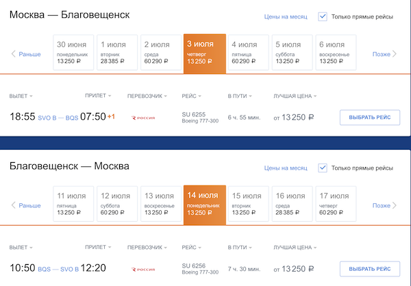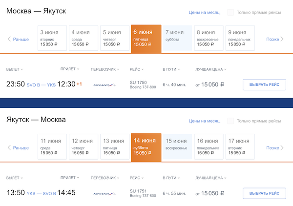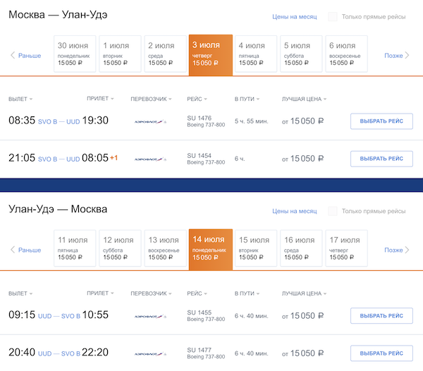 У Аэрофлота открыта продажа билетов по «плоским» тарифам на 4 новых направления: Анадырь, Благовещенск, Улан-Удэ и Якутск от 26.500 рублей туда-обратно.