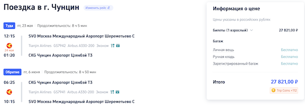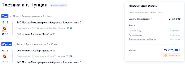 Прямые рейсы из Москвы в Китай (Чунцин) в мае-июне 27.800 рублей туда-обратно.