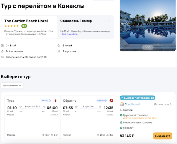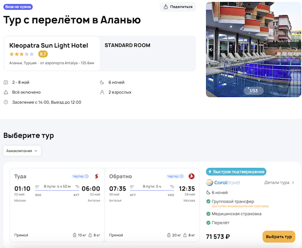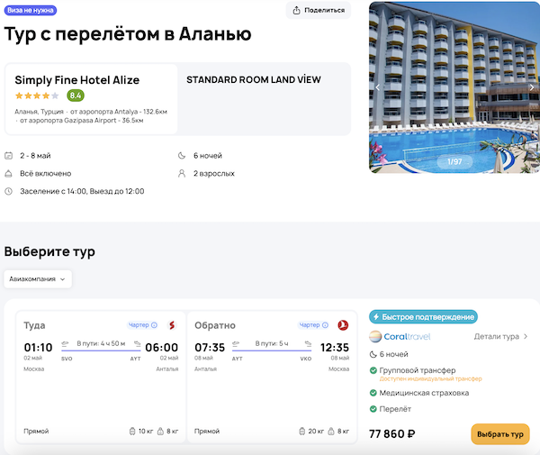 Стоимость в примерах указана за одного человека при условии поездки вдвоем, стоимость туров для одного человека можно посмотреть здесь или на страницах отелей.