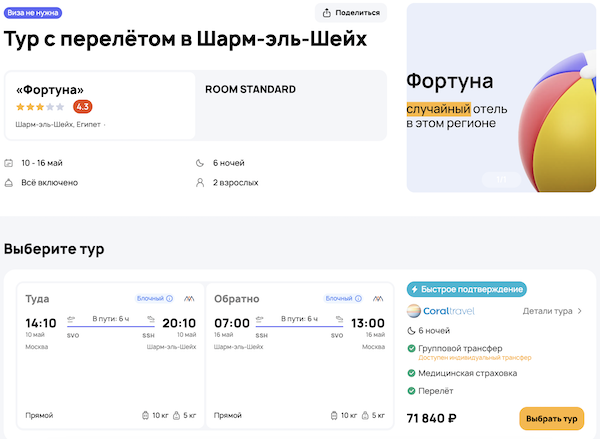 Случайный отель 3* 35.900 рублей за человека (71.800 рублей за двоих)