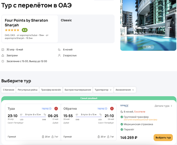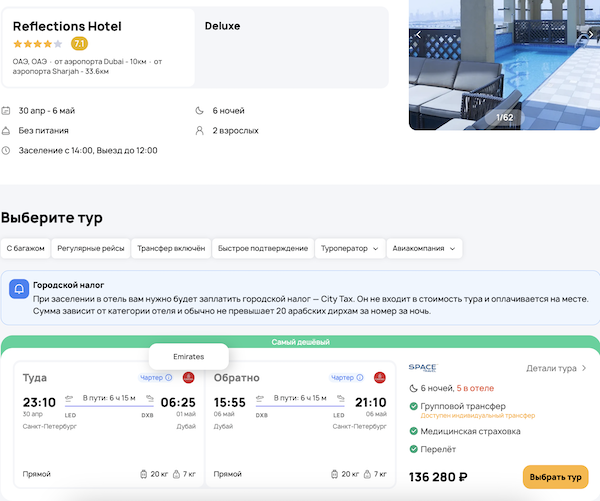 — прямой перелет в Дубай и обратно, авиакомпания Emirates;
