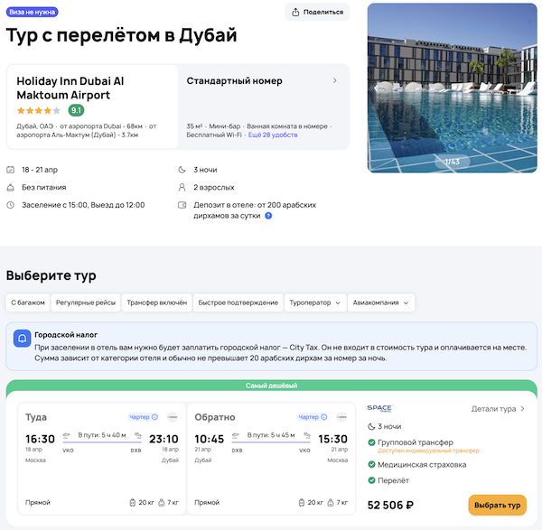 — прямой перелет в Дубай и обратно, авиакомпания FlyDubai;