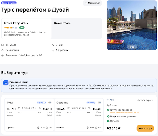 Туры из Москвы в Дубай на выходные от 26.200 рублей за человека.