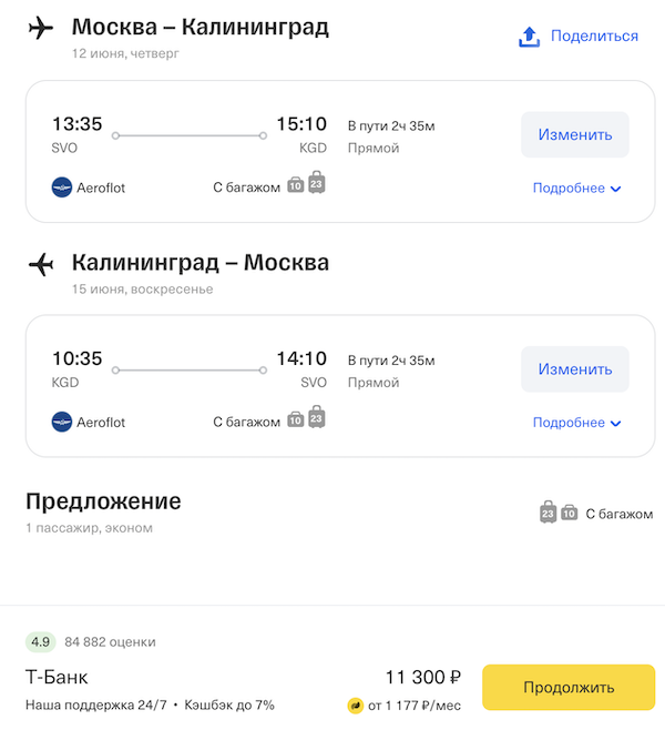 Как забронировать: на сайте авиакомпании или через Т-банк тревел с кешбеком до 7%.