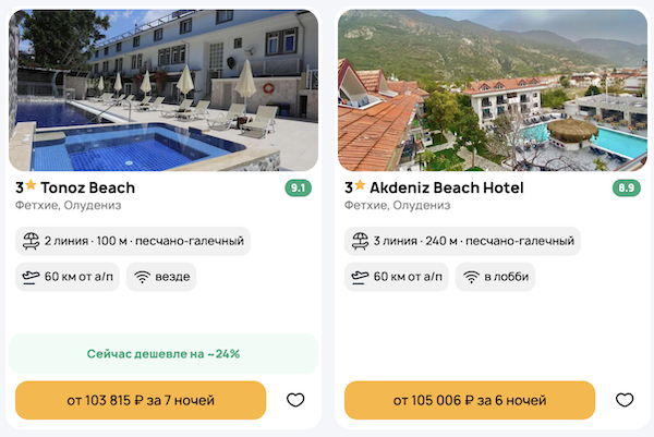 Стоимость в примерах указана за одного человека при условии поездки вдвоем. Стоимость туров для 1 человека можно посмотреть здесь или на странице отелей, изменив количество туристов.