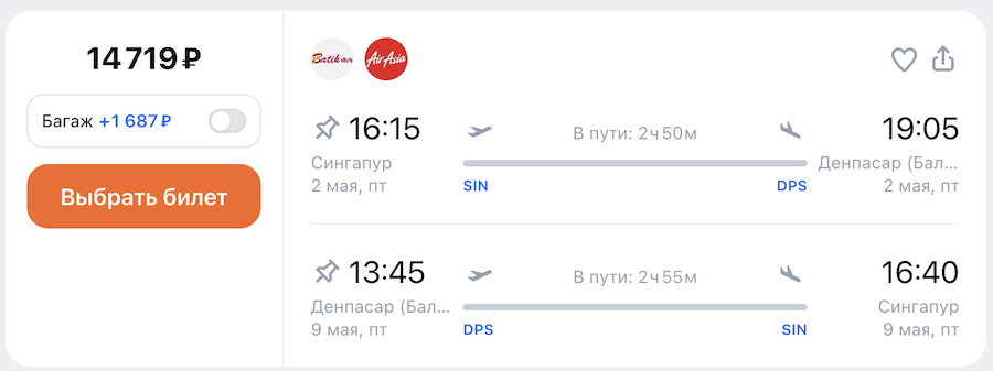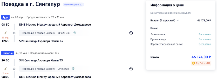 Майские праздники в Сингапуре: билеты из Москвы от 46.200 рублей туда-обратно.