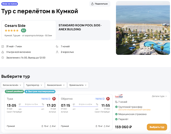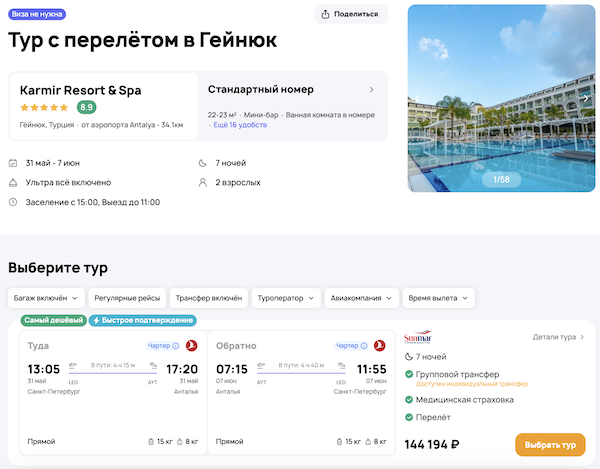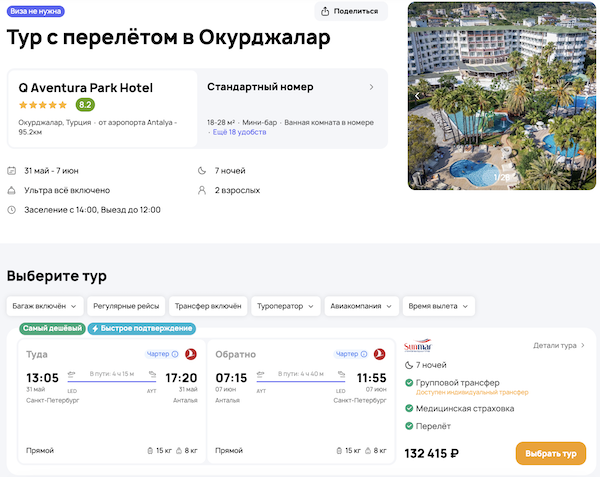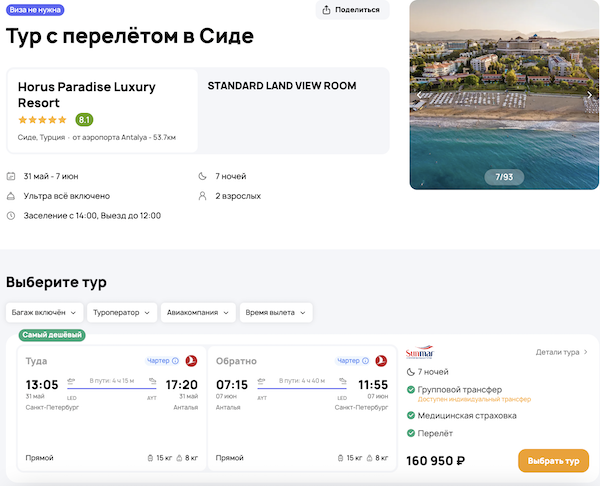 Стоимость в примерах указана за одного человека при условии поездки вдвоем, стоимость туров для одного человека можно посмотреть здесь или на страницах отелей.